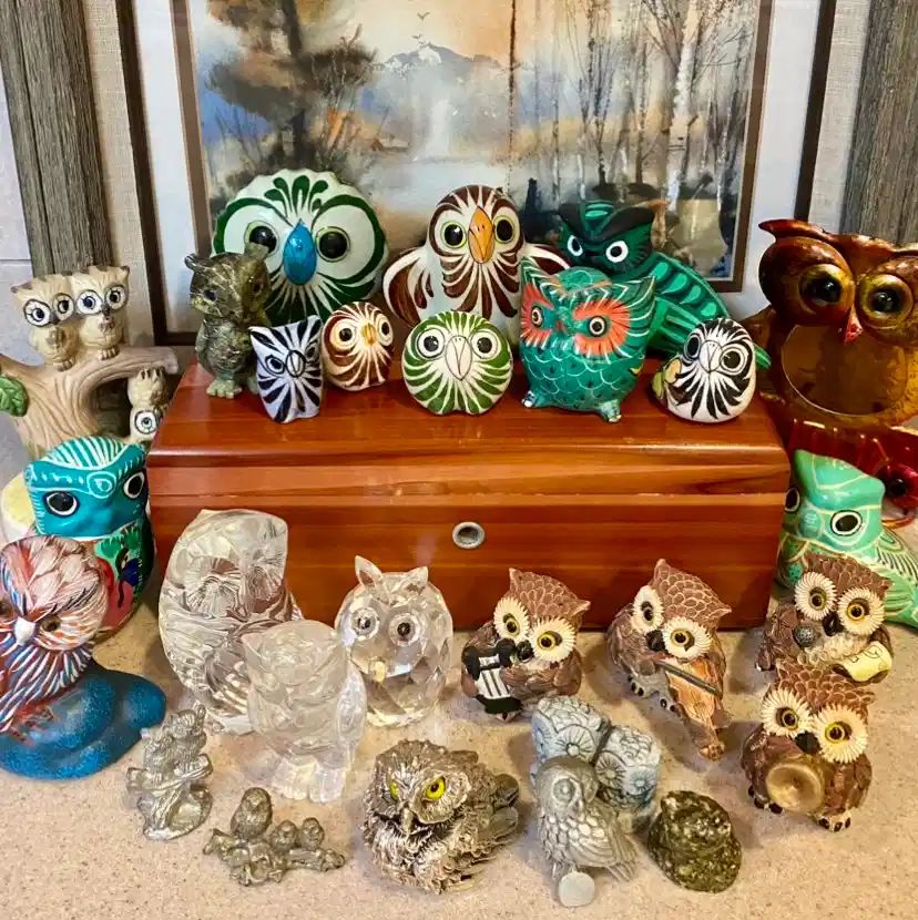 We are pleased to bring you this amazing vintage sale in Schertz. The family has moved into a more manageable home and they are parting with a large collection of vintage items collected over many decades. There are 200+ vintage owls of varying sizes, materials and ages. Vintage furniture, art, collectibles, sports hats and memorabilia, closets and racks full of new and vintage clothing, kitchen and bar ware and a pristine set of steel garage storage cabinets. We are also offering a washer/dryer set and a stainless steel refrigerator. We will be updating with more photos and info daily so...