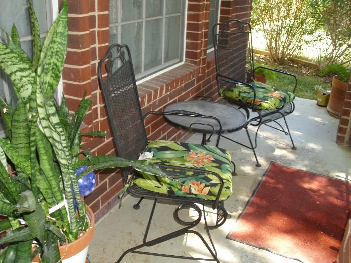 Tools, kitchen items, outdoor furniture, birdbaths and plants.