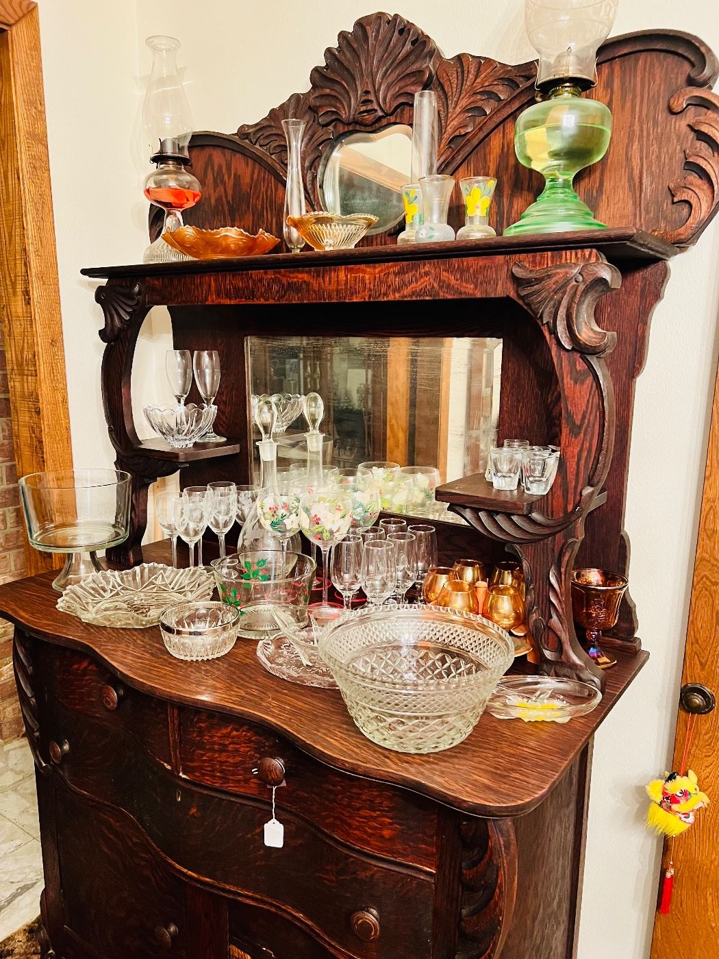 Absolutely way too many items to list! But here is a rundown: King Size Oak Bedroom Set, Long, Amazing Mid Century Modern Sideboard, China Hutch, Antique Buffet/Sideboard, Vintage Decor, Women’s clothing-Sizes 10-18, Mens clothing-Sizes 46 pants & 3X shirts, Vintage canisters and glassware, Lots of pots and pan, Dish Sets, McCoy Pottery Canisters, Sewing, Quilting, Embroidery, Crochet, Crafts,, Sewing machines & Serger, Paperback Books, Seasonal Decor, Exercise Bike, Electric Wheelchair with Trailer to haul it, Recliners, Leather sofa, Rolltop desk, Computer desk, Typewriters-Electric & Manual, Misc Medical Items, Kitchen electrics, Bedding, Towels, Table linens, Many different dressers, Cookbooks, Coffee tables...