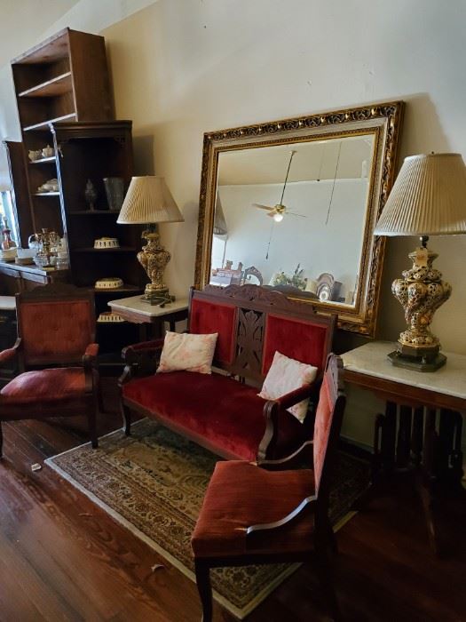 Store owner is liquidating inventory to be able to utilize the building for other purposes. Sale continues at 50% off for a couple more weeks then we go to 75% off. Keep checking back as we pull more out now that we have the space. Vanities China hutches End tables Lamps G Harvey prints Mirrors Chests Storage chests Plant stands Bowl and pitchers Brass candlestands Wash stands Display cabinets Pie safe Hall trees Dressers Parlor furniture Settees Recliners Drop leaf tables Easels Matching loveseats Matching chairs And more.