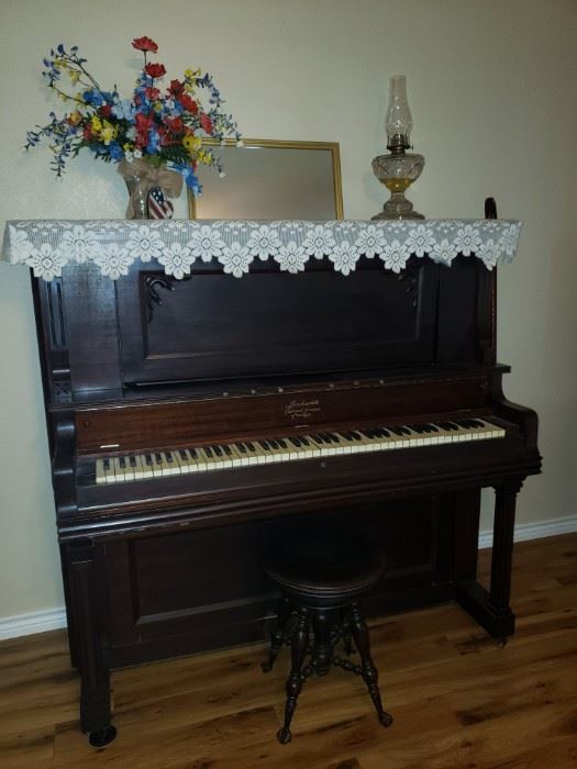 This week's sale has some really nice items. The first one is a beautiful vintage paino! It is a beautiful piece of furniture. We also have more beautiful items. Here is a list of some of the things that are available. Vintage Paino Paintings by A. D. Greer Dining Table with 4 Chairs China Cabinet Curio Cabinet Sofa Recliner Chair/ Chaise Coffee Table Side Tables Bar Stools Quires Size Bed Dresser with Mirror Nightstand Chest of Drawers Desk Jewelry Armoire Toddler Bed High Chair TV Depression Glass Candlewick Glassware Kitchen Items Dish Set China Tea Set China Set Decor Washer...