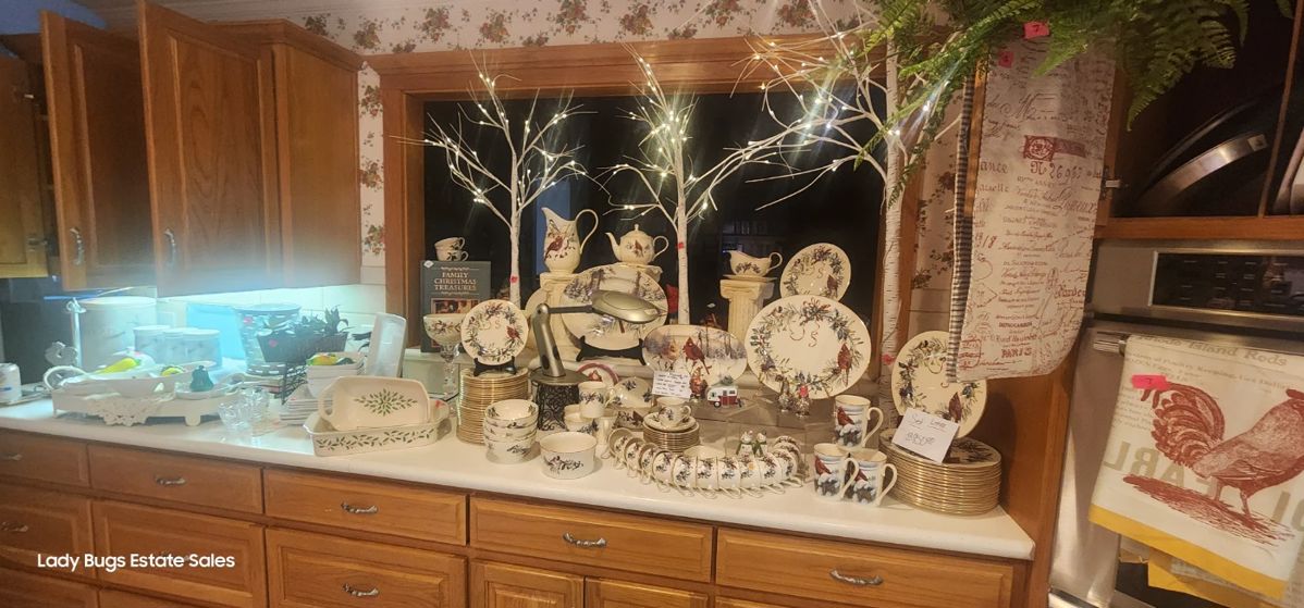 We are still full.. lots of nice items and furniture left. Come by and take advantage of 25% off. Sunday 11-3 This large home is packed .. .filled with Quality items.. From tools to crystal.. Washer dryer Linens Towels Bedding Large collection of of books and movies. Camera collection.. vintage Lenox dishes Crystal Sterling silver flat ware( 2 sets ) Large vintage crystal chandelier Livenroom furniture 2 sets Dinning room table China Cabinet Collection of nut crackers 6ft tall nut cracker Grand father clock curio cabinets Twin beds Bedding Lots of art work 2 Rooms full of christmas Queen bed...