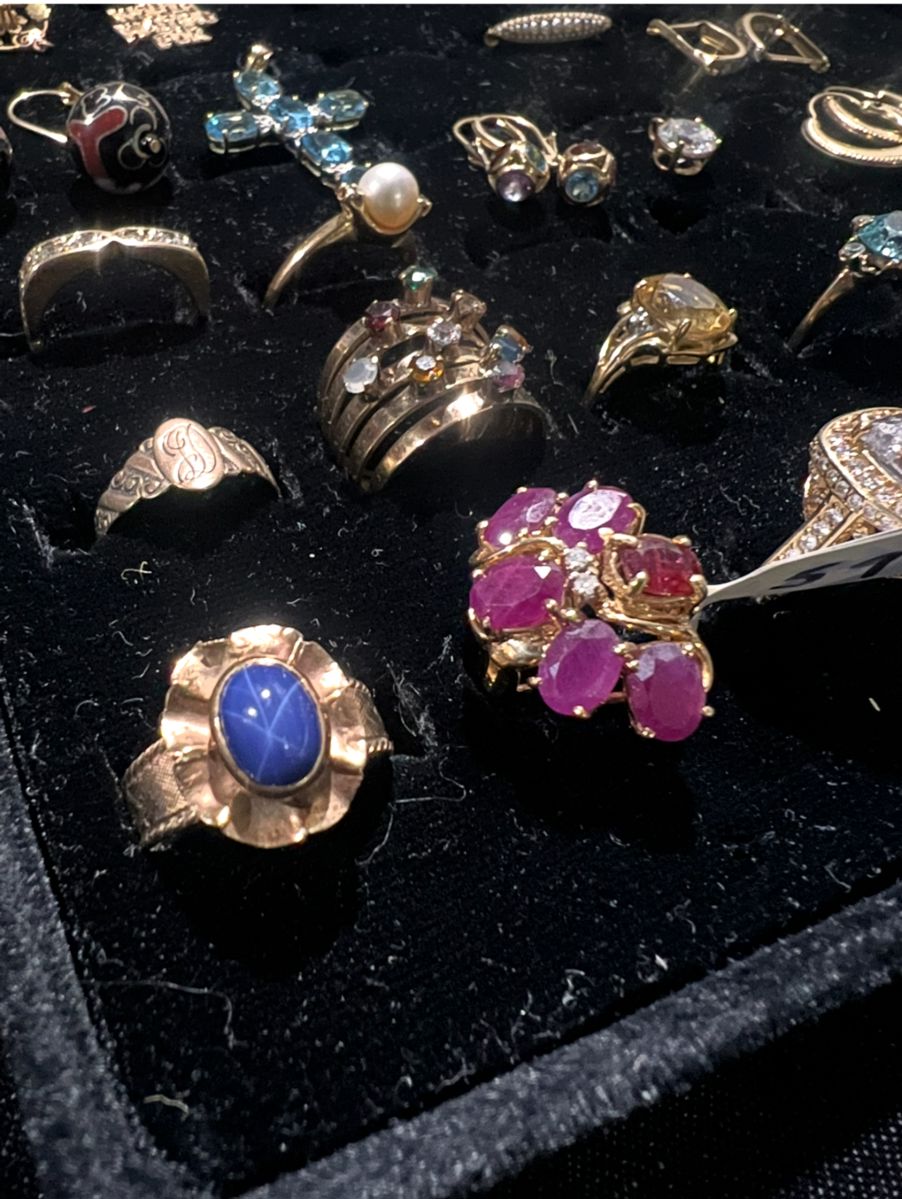 This is a great opportunity to buy a Valentine's Day gift. There's a wide variety of items: lamps, kitchen utensils, a large collection of beer glasses, clothing, watches, 14k, 10k, and 925 silver jewelry, pocket watches, a little bit of everything