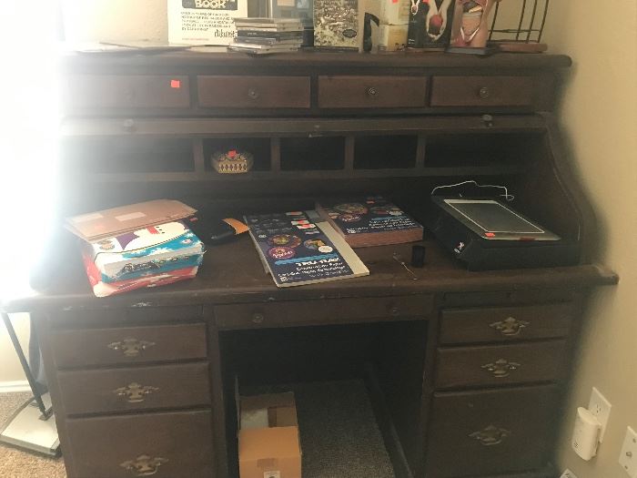 Texas Tech Mike leech signed football and jersey. Texas tech memorabilia. side-by-side refrigerator. Washer dryer, table and chairs, aquariums, 50 inch flatscreen TV, household items, vintage sewing machine with accessories, rolltop desk, fire king corning ware, clothing, and furniture, lawnmower and jewelry.