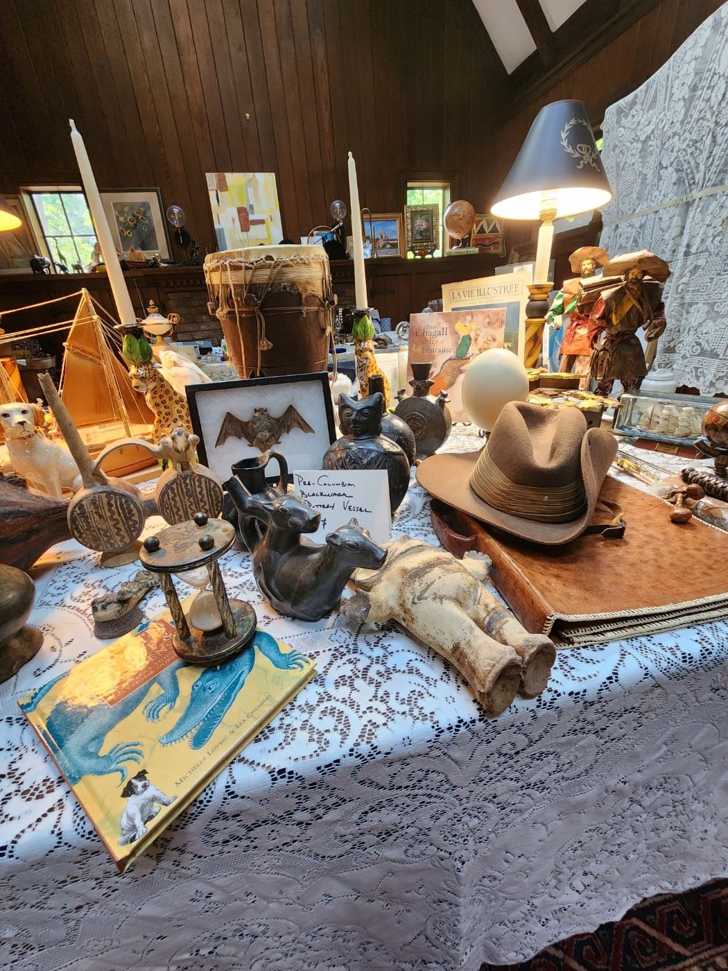 SATURDAY: 40% OFF ALL ITEMS $2.00 TO $125.00. CASH & CHECK ONLY!! English Tudor Style home filled with eclectic items. World traveler with unique items, Pre-Columbian POTTERY, Africian Drum, Asian items(dishes,platters,artwork), VERY large selection of hardcover & paperback books(cookbooks, dog, children, garden, literature,fiction,nonfiction,textbook).Furniture, smalls, vintage electronics, turntables, receivers, speakers, Gameboy, Playstation 1&2, Nintendo GameCube, Sega. Large assortment of cell,cordless house phones, office supplies. Vintage toys & games, 1950s Lionel O-Gauge train set, Little Tikes, Legos,Playmobil Circus Romani, Board Games, Artwork, Vintage Christmas & Halloween, kitchenware, Waterford & Tiffany Crystal, silver & silver-plated serving utensils. Clocks, lamps, children, ladies & men's...