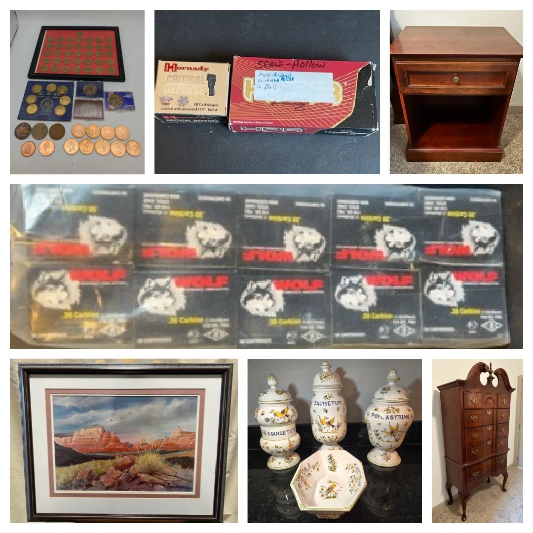 Welcome Home to CTBids! We put together an excellent selection of items for you! Start exploring and discover the deals for yourself! Bidding on ALL items starts at $1! Come & browse this amazing autumn auction in Ashland Va. This huge auction offers a selection of items such as artwork, furniture, glassware, ceramics, crocks, pottery, TVs, toy trains & accessories, dolls, and silverware. Artwork includes original signed oil paintings and prints. Furniture in wood metal and glass, including pieces from Henredon & Baker. There is a huge selection of seasonal holiday Byers Dolls to bid on & few flatware sets...