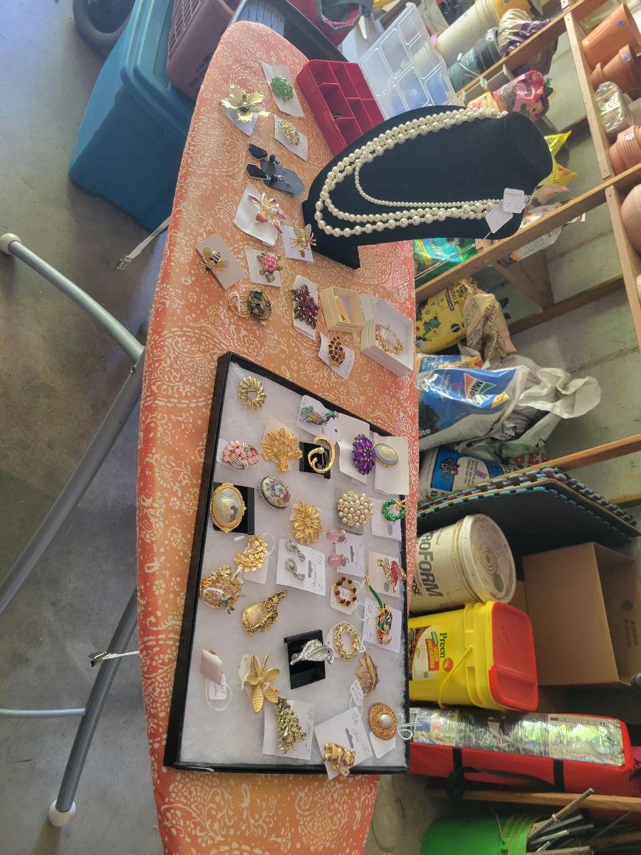Lots of antiques and collectibles cash and check only too much too many to name Lots of patio furniture wicker lots of antique collectibles Women's clothes and shoes outside yard figurines planters Lawn tools I could go on and on