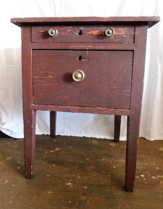 Keep watching for listing!! Red Painted Cabinet with Single Drawer - Cut Nails - Measures 30 1/2" tall 24" by 24" Unusual Club with Carved Indian Face - Carved Handle - 28" long Mill Creek Lake Oil on Canvas Painting in Gold Gilt Frame - GB On Back - Frame Measures 17" by 19" Painting Measures 11 1/2" by 14" - Some Gold Flaking on Frame Pair of Awesome Heavy Brass 3 Branch Candle Sconces -Laurel Wreath and Pine Cone Details 16" long 14" Wide Green Demi John Bottle - Applied Top - N on Bottom - 18" tall Primitive...