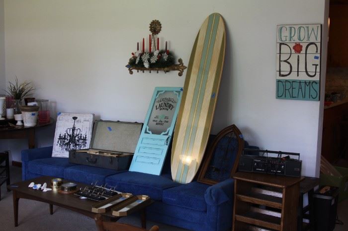 Music equipment along with 8-track, vinyl, CDs, VHS and DVDs. RC aircraft and replacement/ build parts. Full wood shop and a plethora of hand tools including jig saws, circular saws, sanders, and manual (hammers, saws, wrenches, etc…). Clothing, jewelry, linens and more. Kitchen utensils, serve and dish ware along with appliances. Games, dolls and toys. Mid century modern kitchen circular table with 4 chairs. Lawn tractor w/trailer. Push mower and other yard equipment and tools. A camera collection ranging from antique to modern day. Shoes, clothing and jackets. Along with the Peavey amp, there is a Fender amp not pictured....