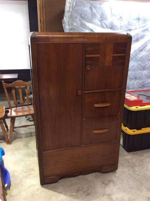 This Chester downsizing sale has great furniture, collectibles, tools, art and MORE! This sale will be entirely held in the detached garage. Inventory Includes: Simmons Beautyrest king mattress and box spring Art Deco waterfall armoire Stihl FS75 has trimmer Homelite Trimlite has trimmer Weedeater electric trimmer Falconer metal yard cart Delta joiner planer RTC wood turning lathe GL-1000 Weedeater lawnmower Scott’s Turf mower Scott’s spreader Cyclone spreader Wheelbarrow Louisville extension ladder Pipe clamps Plastic sawhorses Plastic folding workbench Model train Vintage hand tools Weber charcoal grill 8x8 dome tent Coleman fleece sleeping bags Coleman Blackcat catalytic heater Welt Safe Lock...