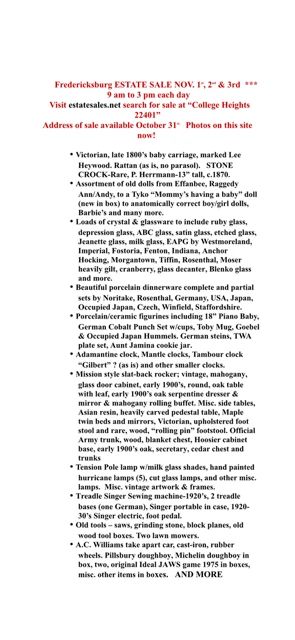 College Heights Fredericksburg Estate Sale * Nov 1st-3rd 9am-3pm* Address released 10/31