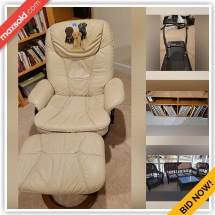 WHAT IS IN THIS AUCTION? This online auction features Leather Chair, Treadmill, Printer, Office Supplies, Small Kitchen Appliances, Cedar Hope Chest, Collectible Dolls, Tools, Leather Theater Recliners, Patio Furniture, and much more! HOW TO ACCESS THE AUCTION? Simply click here: MaxSold TO BID PLEASE REGISTER: Copy and paste this link to your browser https://maxsold.maxsold.com/register WHEN DOES THE AUCTION CLOSE? Everything will SELL BY Wednesday February 23, 2022 8:00 PM regardless of price. Bidding starts at $1. This is an online auction. We do not sell or ship privately. For more information, please visit https://maxsold.com/terms-and-conditions