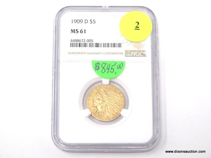 Click here to access the full auction catalog & begin bidding today! 9/3/21 RARE COINS, Silver Dollars, Gold & More! Online Sale. Morgan & Peace Silver Dollars, rare, highly collectible pennies, and GOLD coins. Some truly rare coins in this auction. Bid now! The majority of coins in this auction are graded and slabbed in PCGS, NGC & ANACS holders 1909-D $5 GOLD INDIAN - MS 61. GRADED BY NGC. 1913-S $5 GOLD INDIAN - AU 55. GRADED BY PCGS. 1915 $2.50 GOLD INDIAN - AU 58. GRADED BY ANACS. 1909-D $5 GOLD INDIAN - XF 45. GRADED BY PCGS....