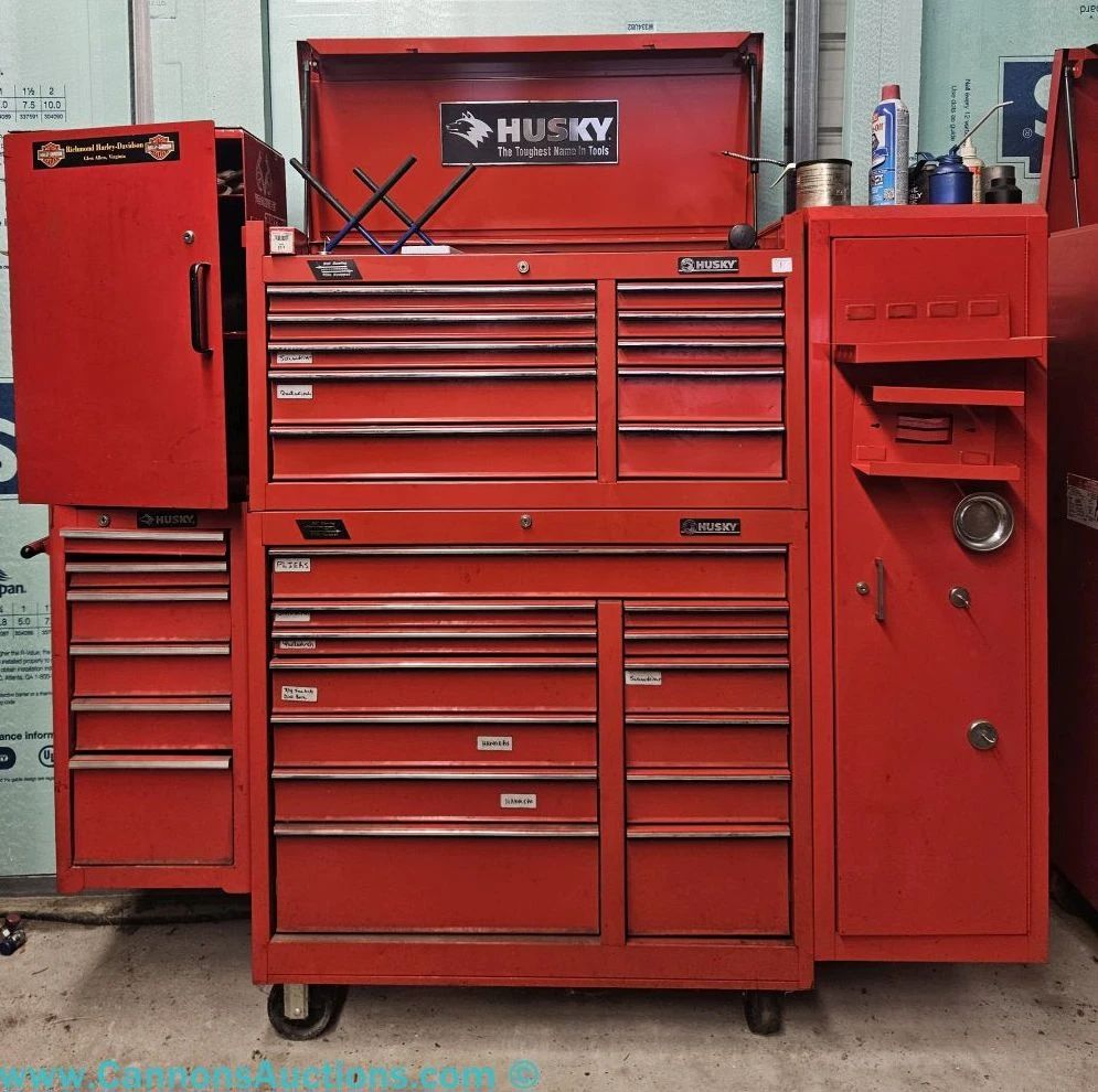 03/09/26: Home Workshop, Tools, Accessories | Osborne Turnpike | Richmond VA 23231 Home workshop and shop equipment including Husky rolling tool chests, Craftsman tool chests and toolboxes, an Armstrong Medical tool cart, a US General rolling chest, a heavy-duty Franklin scaffold, a Cyclone blasting cabinet with blasting beads, a Graymills Clean-O-Matic parts washer, a Wesco industrial pallet jack, a Campbell Hausfeld air compressor with hose, a Toro T1800 generator with AC/DC outputs, a Reddy Heater 60,000 BTU heater, Rockwell Jawhorse portable workstation, jack stands, auto dollies and a transmission jack, NAPA Evercraft socket set and NAPA air impact wrench, automotive...