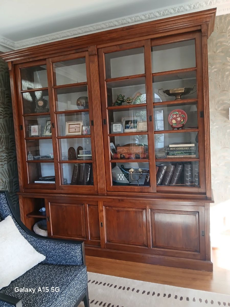 This is the second weekend for this sale.It is now discounted at 50% off furniture, Lamps, mirrors, carpets, home decor. All of this furniture is an excellent condition. (FURNITURE PURCHASES SHOULD BE REMOVED BY 2 PM ON SUNDAY OR BY DELIVERY SERVICE ON MONDAY.WE WILL PROVIDE SEVERAL NUMBERS OF SERVICES FOR YOU TO CONTRACT WITH.) Pet free home Including but not limited to: Gorgeous Baker Furniture dining table, 6 chairs A1 2 Ethan Allen Cayden upholstered armchairs like new Handsome, refinished Victorian library and display cabinet cherry stain on oak. 96" x 94 H Grey leather 54" square storage ottoman...
