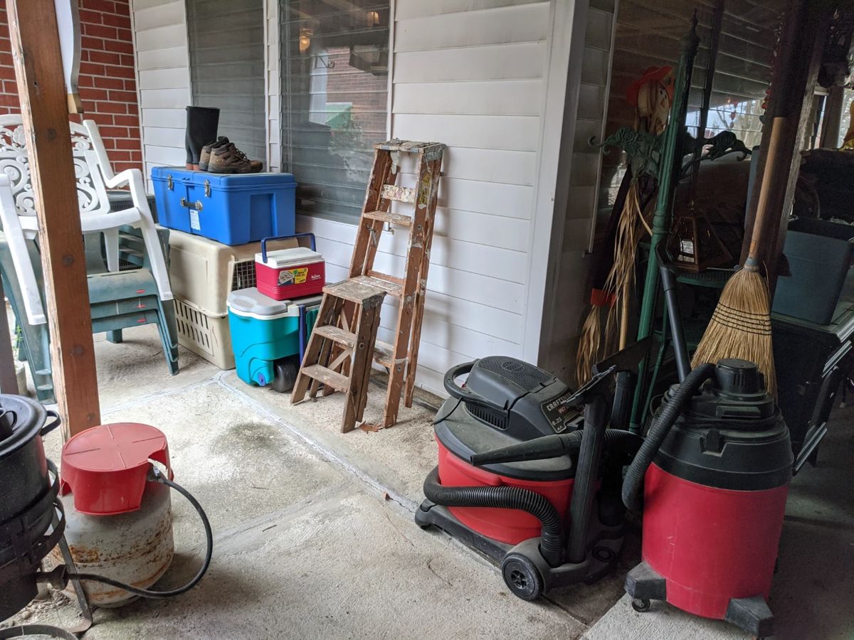 Cash only. Bring help to load large items. 50% off most items other than the items marked $5 and under.