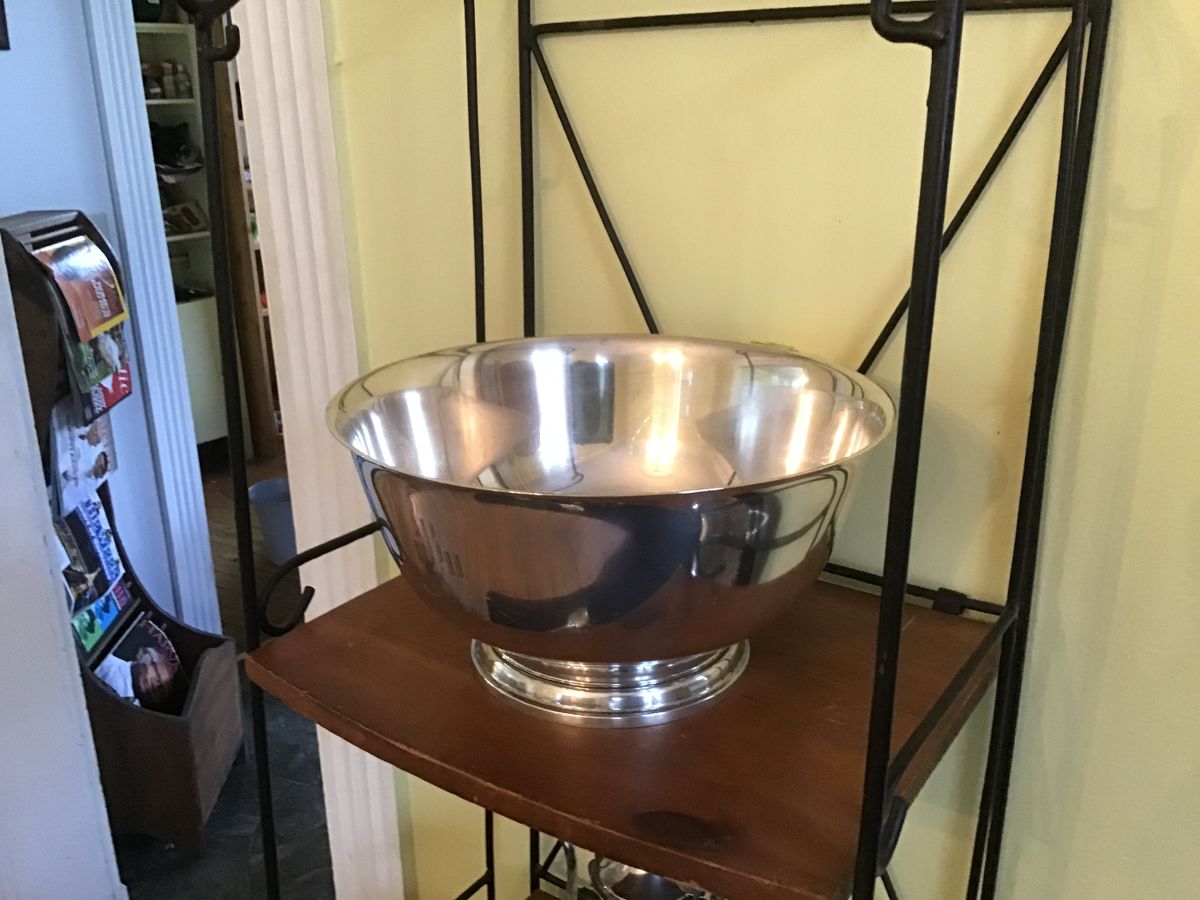 Sterling (Trays, Teapot with Cream & Sugar, Large Revere Bowl, Tiffany & Co. Pcs., etc.), Jewelry (14K & Sterling), Costume Jewelry, Coins, Books, Records, Military Items, Medical Items, Cameras, South African Barbed Wire “Nelson Mandella” Radio, Vintage Underwood Typewriter, Panasonic TV, VHS Gaming TV, Kitchen Full, Sebo Canister Vacuum, Linens, Office Supplies, Office Chairs, Retro Sofa, MCM, Pottery, Bear Family Zuni Carving, Honduras Machete with Sheath, Ethiopian Tribal Headrest, Framed Art, MCM Lamp, MCM Hekman 2 Door Record Cabinet, Human Touch Massage Chair, Danish Modern Chairs by Schou Andersen, Woven Conversation Chairs with Ottomans, Retro Coffee Table & 2 End...