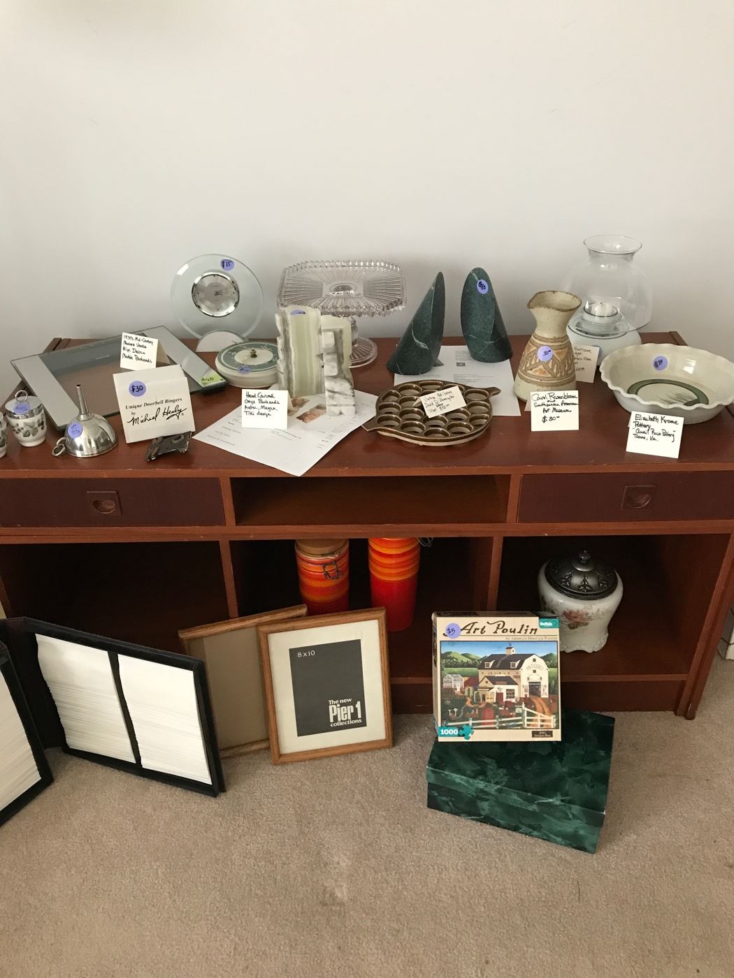 Electronics (flatscreen TV, Bose speaker system w/subwoofer, Bose wave radio, computer monitor, stereo/video receiver), Oneida and other stainless flatware, Dansk mid-century dishes, beverage and wine glasses, vases, costume jewelry, cds, records, cookbooks, ladies clothing & accessories, cookware, waffle iron, blender, hand mixer, bed linens, King-size sleep number P5 bed (frame, bladders, new pump), Oreck vacuum cleaners