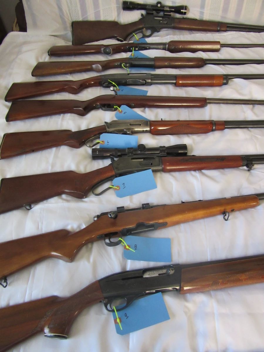 GUNS, CASE KNIVES, GOLD & SILVER JEWELRY, VINTAGE BAR CLOCKS & METAL ADVERTISING SIGNS, FURNITURE, AMETHYST CRYSTALS, ROYAL DOULTON, PRECIOUS MOMENTS, ANTIQUES & COLLECTIBLES GUNS – Marlin 30-30, Brazil 410, Winchester 37/16ga, Remington mod. 870/ 16 ga, H&R 22 cal. Rifle, Glenfield 30-30, Springfield 840/22 cal, Remington 1110 /12 ga, Remington Falling Block 22 cal. Rifle, Winchester 10-22, Ward 22 cal. Rifle, Ruger 10-22 carbine, Iver Johnson 410 ga. Springfield 1884 Trap Door 45-70, Thompson Center Fire 50 cal., Hawken Black Powder Rifle KNIVES – Large selection of CASE knives, Schrade Uncle Henry, Old Timer, Remington GOLD & SILVER JEWELRY...