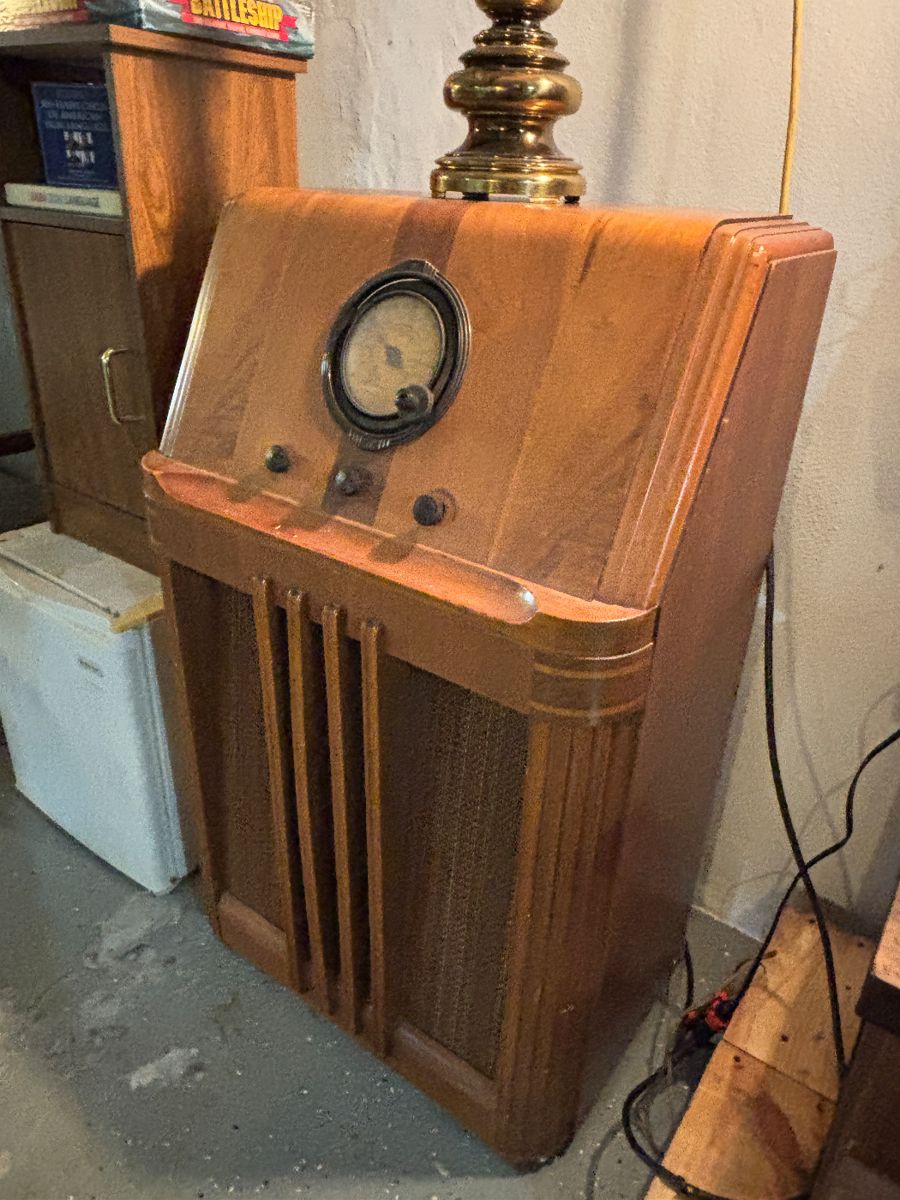 Ridgeway grandfather clock, depression glass, china, pocket knives, collectibles, railroad items, furniture, audio electronics, Fantasia by Princess House, tools, lawnmower, household, more.