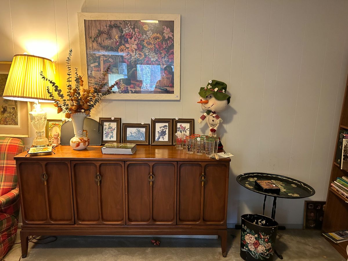 Kitchen items, dishes, China, cookware, vintage, corning, ware, flatware, glassware, linens, holiday, decor, furniture, women’s vintage clothes, shoes, sterling silver, costume, jewelry, decor, albums, antique books, books, cookbooks, men’s clothes, perfume, tools, tea, cups, Mid Century Modern, furniture, office, items, camera, equipment, yard tools, vintage toys, and games, patio furniture, cast-iron planters, yard, art, freezer, tarps, grill, wreaths, luggage, and much more