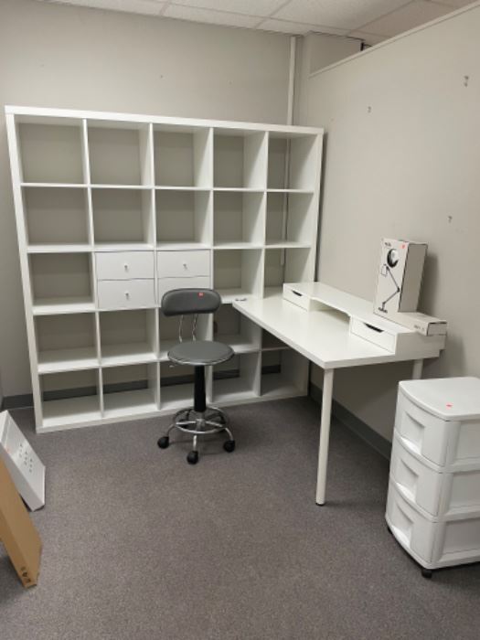 Photography studio going out of business. 35 year career children's photographer retiring. Everything must go. - Children's Props : lots of wicker and antique furniture, doll carriages, costumes and outfits, Christmas props and outfits, angel wings, large baskets, posing blankets and many others - Photography Equipment : backdrops, stands, some camera accessories - Office Equipment : large black 3-drawer file cabinet, "Decorum" shelves and table, 2 desk units with shelves, chairs, - Furniture : sofa, "Decorum" shelf and dining table, stools, chairs