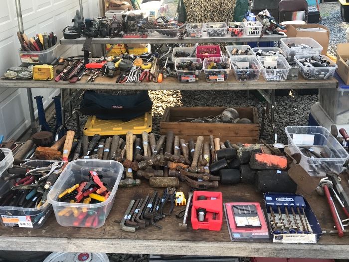 Tool, tools, and even more tools. Unpacking tool boxes and unloading more and more of the Joe Greco Estate for this weekend sale! Estate Sale Snap-On tool boards, Coca Cola tins, Miller Light Beer signs, Walnut role top desk, milk cans, vintage needle point stools, chairs, five drawer tall 24" dresser, needle point fold up chair, collectible cups McDonalds, fishing reels and poles, round mirror, framed mirror, school desk, kitchen gadgets, cookie jar, presidential campaign collection, coca cola cook clock, school chairs, Rainer Draft beer sign, Mac 27" desk top, vintage light fixtures brass, shop creeper, flower pots, beaver pelt,...