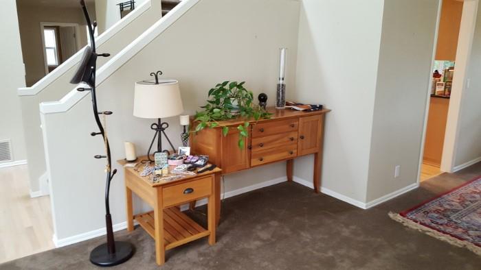 Note: This is a partial list of items. More items may be added as the sale approaches. Please follow signs for Parking in tree farm parking lot, walk over to house. The Driveway is for loading only. Furniture: Credenza Crescent China Hutch, dining room table with 6 chairs, side board, Coffee table and end tables King Tempurpedic mattress with the King headboard/frame Brayton Couch and side chair Coat tree TV cabinet Table with 6 chairs, 1 leaf Oak table with 4 chairs, 2 leaves 3 Queen bed frames only (no Mattresses) Wicker Bed w/ matching night stand, mirror & Dresser...