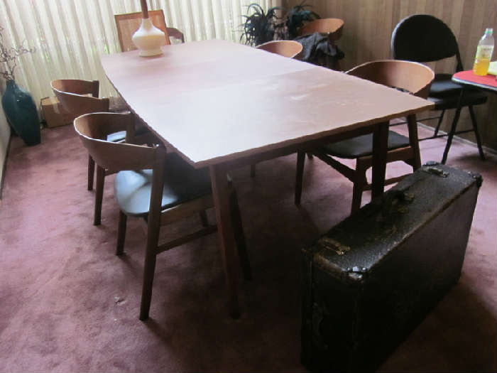 2 floors plus garage with Mid Century Modern 50+ years in same home. Here are some of the highlights: Mid Century Modern Hibriten dining table with 8 chairs, Mid century modern couch (has some wear on arms), Mid Century Modern dresser, 2 Mid Century Modern beds without mattresses 1 twin and 1 double. Shag rug, costume jewelry, vintage hats and purses, some vintage women's clothing, Mid Century Modern pottery dish set & glassware, sewing machine and vintage sewing patterns, Victorian Serpentine dresser with marble top & mirror (comes with appraisal paperwork), Mid Century Modern black "leather" sofa, guitar, sheet music,...