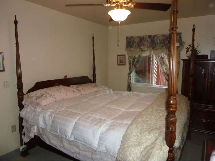 *** Special Note *** One day Sale! Estate sale in apartment and carport. Please respect others in this small apartment complex during early morning hours. List below is only a partial list of the items available. FURNITURE – American craftsman armoire dresser, dresser with mirror, 2 nightstands, 4 poster bed, king Spring Air posture elegance mattress set, couch and matching love seat, matching brass and glass coffee table, end tables and lamp table; glass top kitchen table with 4 chairs, 3 piece entertainment book shelf, sleeper sofa, small chest freezer, plastic pation table and chairs, and other pieces of furniture......