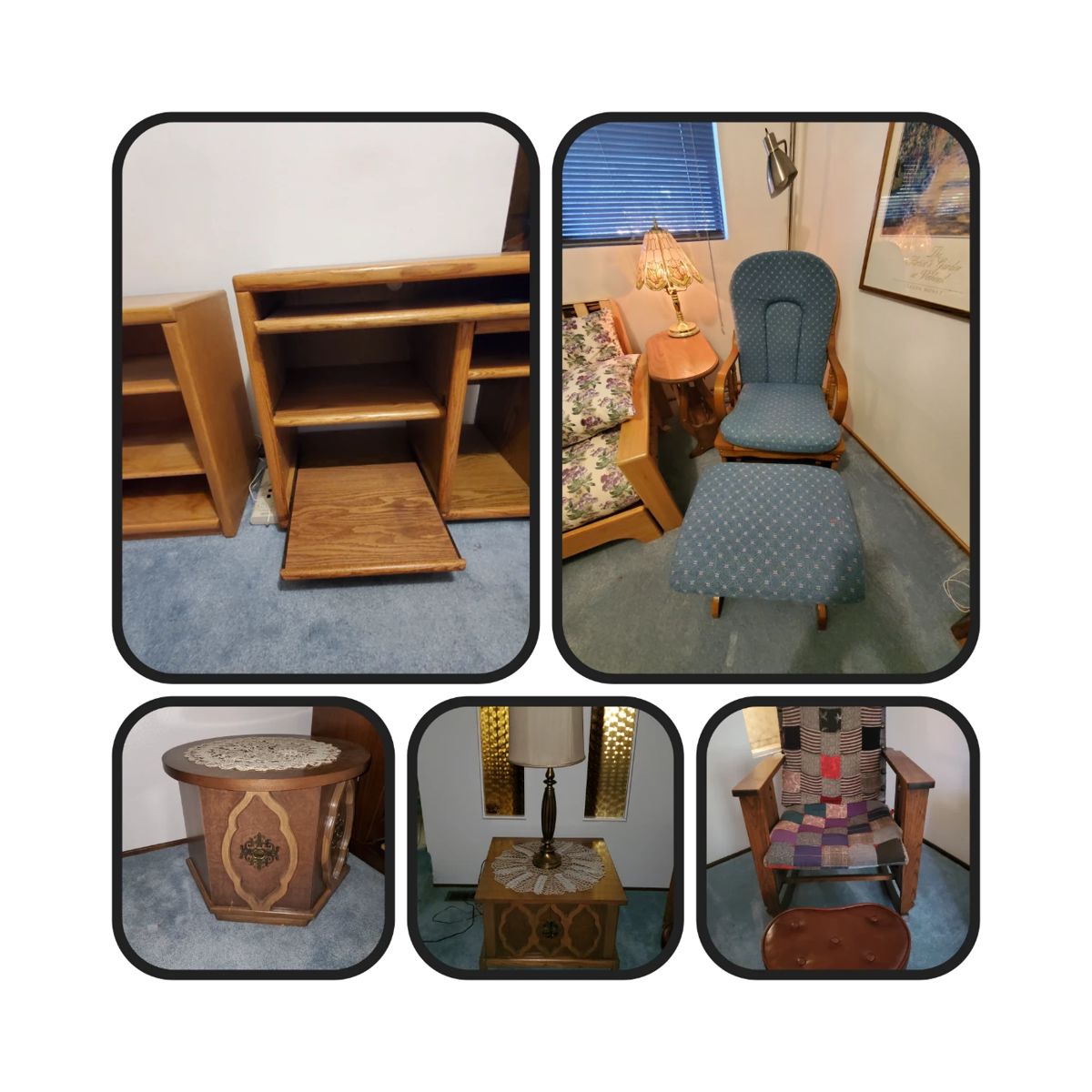 King bedroom set, Husqvarna desk sewing machine, Dining room hutch with buffet cart, Dining room table with six chairs, Two sleeper sofas, One futon, One recliner sofa, One Lazy Boy recliner with remote, Living room side tables and coffee tables, 1967 RCA Victor antique stereo console, 1978 Lowery Promenade C400 organ with Magic Genie, 2003 Dodge RAM 2500 2WD 4 door, full bed pickup truck, Two antique hope chests, One antique trunk, Several bookshelves, Two desks, One closet size safe, One Cuckoo Clock - from Munich Germany, One stand alone electric stove, Lawn mower and assorted garage equipment,