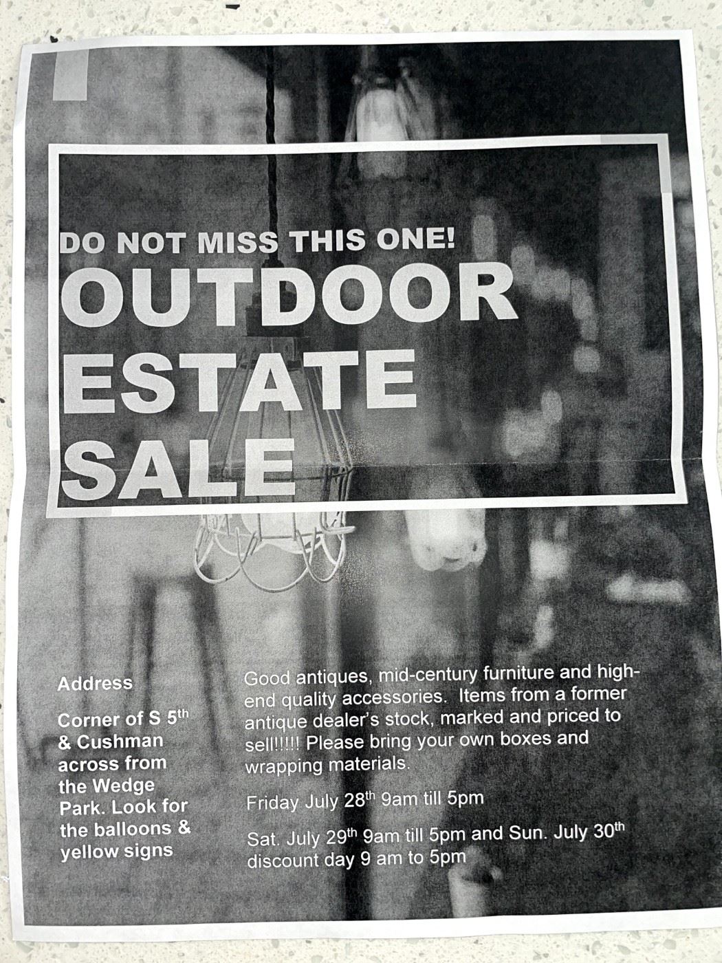 Items are very well priced and ready to be sold at great discounts. Due to the outdoor nature of the sale no numbers will be given out so it is a first come, first serve sale.