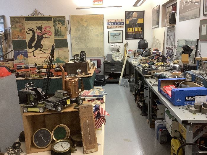 So Many of You Asked Last Week, As You Toured and Found Wonderful Items in this ca. 1908 House, "Is there a Basement?", "Is There a Garage?" This Weekend, We Can Say "Yes! Most Definitely!" As we finally open up the extensive Four-Bay Detached Shop/Garage, Already Filled with Power & Hand Tools, and now Enhanced with all sorts of Cellar Treasures. From Automobilia and Racing Souvenirs to Model Trains and Cars, Old Pacific Brewing Beer Trays, Historic Union Items, a ca. 1961 Metsker Tacoma Reference Map, Vintage Furniture and Architectural Components, Hand Tools by Plomb and other Manufacturers plus large...