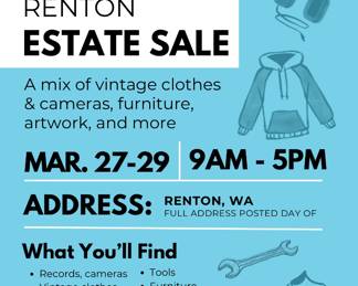 (18 Results)Listed below are all the estate sales that are currently scheduled for the Seattle / Tacoma / Bellevue area. You may also be interested in estate sale companies in Seattle / Tacoma / Bellevue.
