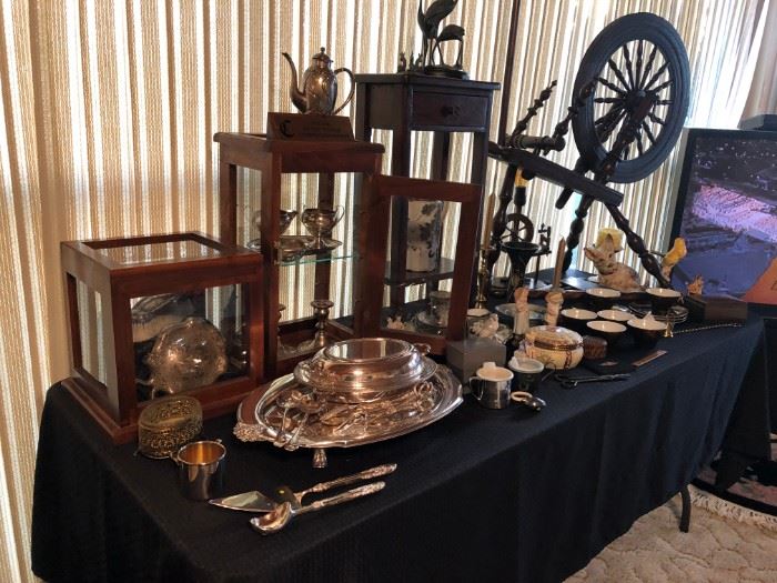 We've got a full house this weekend! So many things for your home, for yourself AND gifts! This house has such an eclectic collection of items... you're bound to find something! SUNDAY DISCOUNT: HALF OFF EVERYTHING! IT ALL MUST GO BY 4PM! FURNITURE: Marble top (cracked) wash stand with drawers, ivory floral chairs, dining room set - table has 2 leaves and 6 chairs, maple hutch (on the smaller side!), tea cart, several side and end tables - including MCM Lane, set of 4 rolling dining chairs, small dining room (or kitchenette) table, green floral oversized chair, wood coffee table...