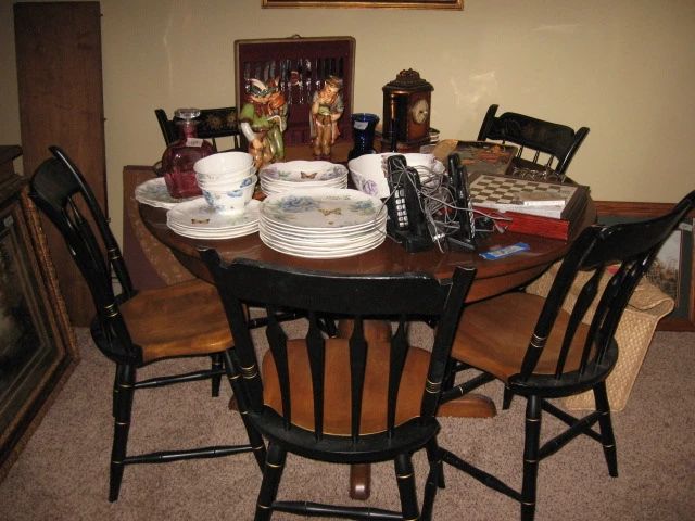 3004 Petunia Beloit, WI 53511 Thur. Nov.9 10am to 4pm Fri. Nov 10 10am to 4pm Sat. Nov 11 9am to 1pm (1/2 price day) Beautiful round dining table 6 chairs 2 leaves and padded protector, large Showcase buffet, unique side table with yarn basket underneath, Beautiful floral arrangements and holiday décor, various artwork, small display cabinets, many beautiful Tiffany style lamps, Pioneer woman dishes, holiday dishes, Lennox floral dishes, Office Chairs, Hummels, lots of vintage dishware including Milk glass, bird statues, and much more Angel collection, flatwear, magazine rack, large beautiful 3 piece cabinet with shelves and glass front...