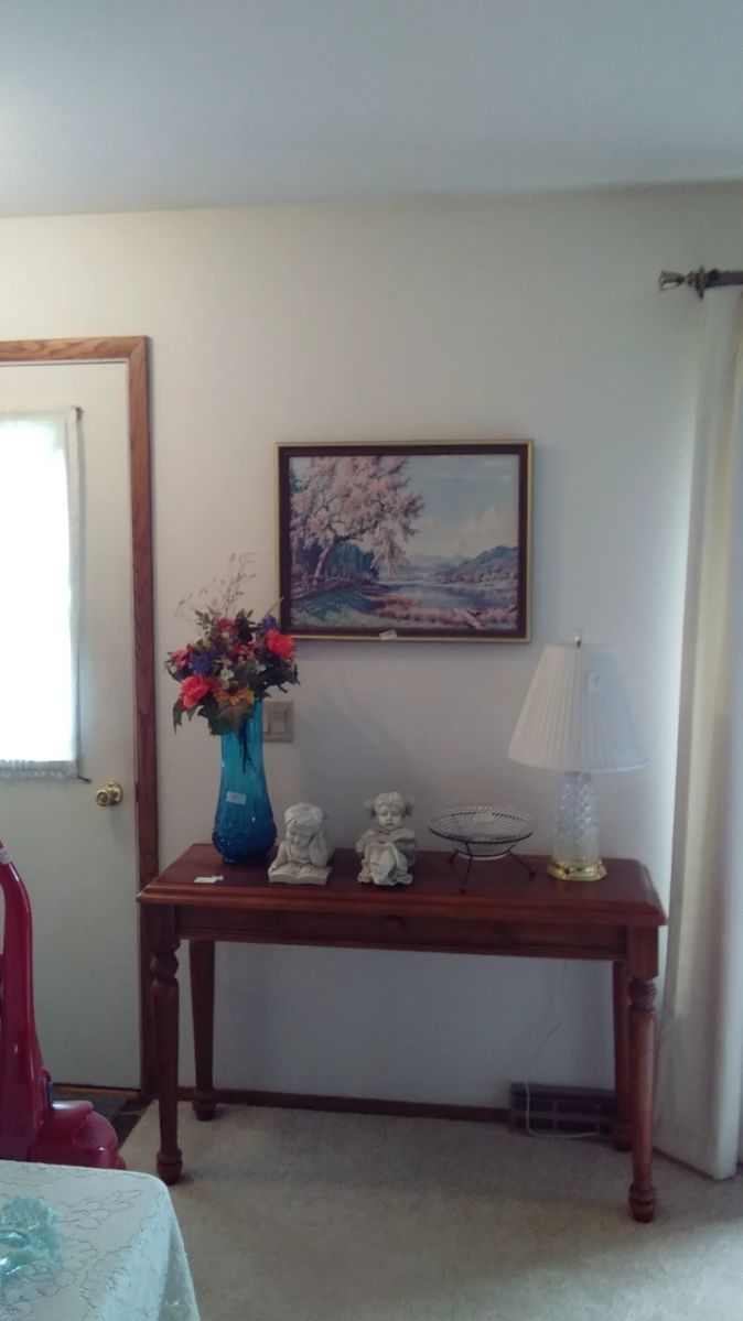 FURNITURE: Sofas, recliners, occasional chairs, coffee, end & sofa tables, rocker, lamps, HOWARD MILLER GRANDFATHER CLOCK, 2 complete full beds & a twin bed, dressers, wardrobe cabinet, bookcases, patio table & chairs, glider sofa. OTHER FURNISHINGS: Linens: lots of sheets, towels, comforters, quilts & tablecloths. Heritage Signature Collection of porcelain dolls & other dolls. Charlie Weaver Bartender doll. Collector glassware & plates, other glassware & dishes. Lots of wall decor, bird collection, costume jewelry, kitchen & bakeware, small kitchen appliances, 4 sets of silverware, lots of women's clothes & shoes, Christmas & holiday decor, art supplies & books, Lots of...