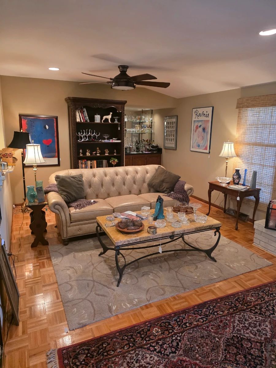 This immaculate home in Brookfield give you the opportunity to own some great furniture pieces. Modern, traditional, Asian, vintage. Nice collection of rugs,some art, frames, beautiful lamps, glassware, decorations. Leather sofas,sectional, king size bed, one queen size bed, mcm cabinet, hooker brand dressers and tables. Some retro style furniture,Asian wardrobe, tables and chairs. A beautiful 3 piece entertainment center. Granite 4 chair kitchen table. 6 chair perfect dinning table,office furniture, Ethan Allen shelves, bookcases, whiker desk, Custome jewelery and some Gold and silver pieces as well. Lots of woman clothing,great brands,mostly size 3 or medium to large,shoe sizes 8,9-9.5 and...
