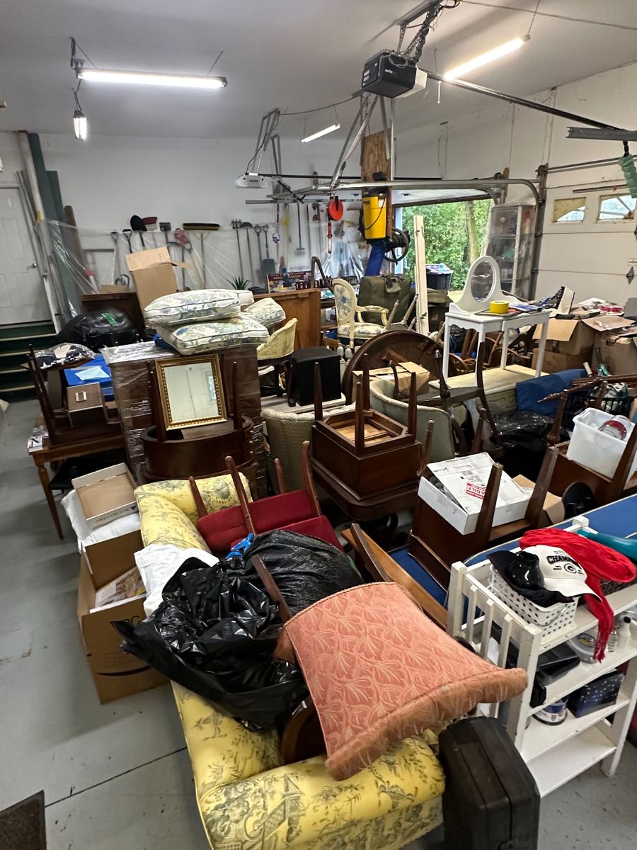 There is a little bit of everything at the sale from antique furniture two more modern furniture . Pots and pans dishes clothes ice skates lots of shoes home decor. Just look at the pictures for more details. If you have any questions, don’t hesitate to ask.
