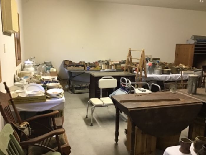 Estate Sale……Friday - Sunday, August 19th - 21st, Friday & Saturday, 8am - 4pm, Sunday 8am - 12pm, 1085 Fond du Lac Ave, Kewaskum, WI. 53040 NO EARLY SALES OR PRICES GIVEN. Limited parking in driveway. Parking is allowed on street Contents on main level, basement & garages. This house is filled with multiple generations of antiques and collectibles. Many items date to the 1800s. FURNITURE, New & Old: Early 1800’s trunk w/original lock & key; Lg immigrant trunk; 1900’s hanky drawer dresser; Dresser; Butternut 1 drawer work table; Set of 6 oak press back chairs & other oak chairs;...