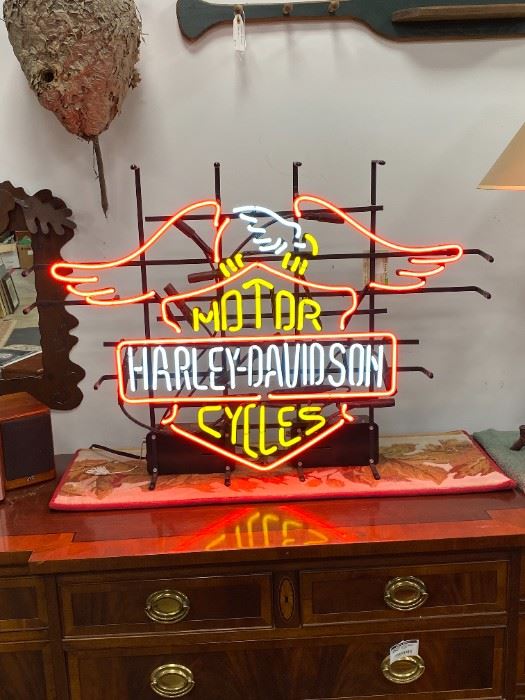 Oconomowoc Lake Estate Sale Part #4 Rare 2000 Harley Davidson Dealership Neon w/ Bar & Shield with Screaming Eagle Collection of Pink Depression Glass 100+ pieces Custom Upholstered 8 Piece Lloyd Loom Indoor Outdoor Furniture Set (Previous two winning bidders did not pick up the item) $3000.00 obo Tennsco Workbench w/ Vise Christmas decorations with ornaments, wreaths, garland and other decorative items. Ornaments including Waterford, Georg Jensen, Hallmark, OWC, Rauch Easter, Halloween and Fall Decor & Decorations Longaberger Basket Collection St. Nicholas Square Christmas Village Collectibles Hand and Power Tools Yard Tools John Deere Battery Powered Childs Car Battery Powered...
