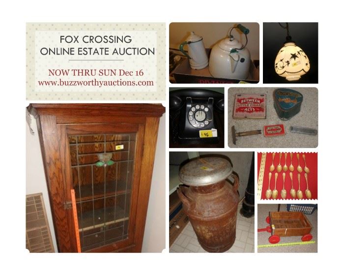 Fox Crossing Online Estate Auction NOW through SUN Dec 16th 7:30pm (Lots begin to close) ***PICKUP LOCATION*** Fox Crossing (house number and street will be emailed to winning bidders) Presented by BumblePuppy Sales, LLC Fox Crossing Online Estate Auction AUCTION NOW OPEN! AUCTION CLOSES SUN December 16th. (Lots start to close at 7:30pm) AUCTION PICK UP DAY AND TIME : WEDS December 19th 11:00am-6:00pm. If you are paying to have your item brought to Appleton (621 Westhill Blvd), the items will be available in the store Thursday through Saturday of the same week. 13% buyers fee applies. You receive a...