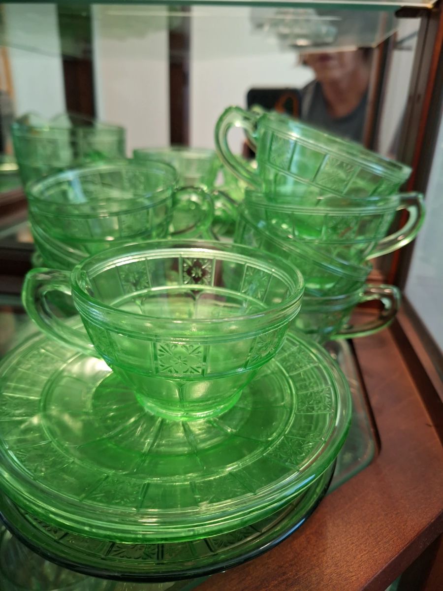 SATURDAY 50% OFF ALL PRICED SATURDAY CREDIT DEBIT ONLY Depression Green Glass, Porcelain Dolls, Crafts, Holiday Decor, Sports Collectibles, Electronics, Tupperware, LLadros, Hammary Tables, Thomasville Dresser, MCM Blonde Wood Bedroom Set & Desk, File Cabinet, Vintage & Everyday Women’s Clothing & Shoes, Vintage Boston Store Chairs, Thomasville Dining Set w/ 6 Chairs, Antique Furniture, Pottery, Tea Cups, Towels, Linens, Cleaning Supplies, Housewares, Lefton Tea & China Set, Frames, Office Supplies, Vera Bradley, Disney, Outdoor Decor, Pyrex Vintage Steinhafels Couch (86x45x28) Vintage Boston Store Chairs (30x30x27) Antique 3 Drawer Dresser on Casters (36x20x29) Curio cabinet (33x22x76) Bassett China cabinet (50x17x74) 4...