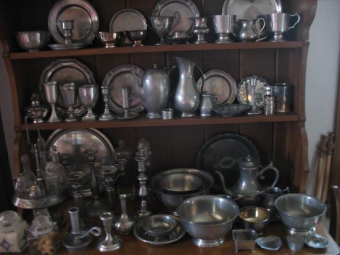 ON SITE ESTATE SALE Early American style home offering wonderful collections of collections: Quality antique/primitive/country furniture-some painted, some Hitchcock: Dry sinks Side chairs Spice Boxes BLACK FINISH PIANO Drop front secretary Dressers Crock benches COLLECTIBLES: Pewter Copper Brass Milk Glass-Westmoreland, Indiana, Imperial Crocks Blue Onion Dish Set Johnson Brothers dish set Pfaltzgraff dish set King's crown style thumbprint glasses Delft Barber/Vanity style bottles Blue glass Baskets of every shape and size Handmade Rag Rugs Some tools & tool bench, hardware, misc. garage items Patio furniture Christmas decorations