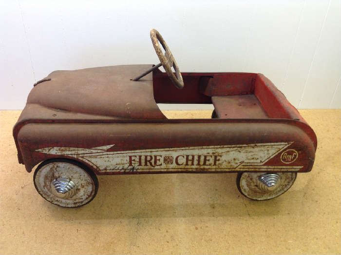 Wise Owl Auctions Of South Milwaukee. Up for auction is a good collection of collectibles, A 1940's era Fire Chief pedal car, Antique/vintage fly rods, reels, lures, primitives, brewerania, old car parts and more. Come check us out for good quality items.