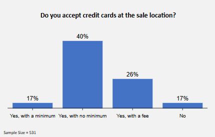 We learned through the 2024 EstateSales.NET Seller Survey, that 83% of companies are accepting credit cards at in-person sales. 26% charge a fee for the service and 17% set minimum amounts. As such, Point of Sale (POS) tools are extremely important for collecting payments from shoppers efficiently and securely at an event.